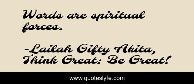 "Lailah Gifty Akita, Think Great: Be Great! Quotes." Quoteslyfe.com, 2025. Mon. 08 Dec. 2025. <https://www.quoteslyfe.com/quote/Words-are-spiritual-forces-95192>.