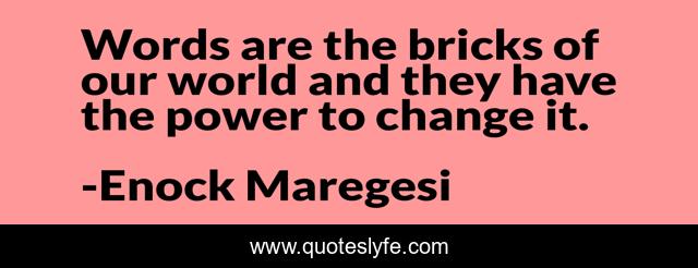 This page presents the quote "Words are the bricks of our world and they have the power to change it.". Author of this quote is Enock Maregesi. This quote is about bricks, world, change, power, words,.