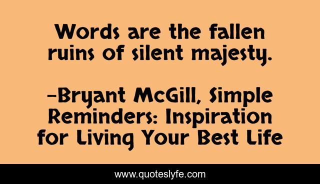 "Bryant McGill, Simple Reminders: Inspiration for Living Your Best Life Quotes." Quoteslyfe.com, 2025. Fri. 05 Dec. 2025. <https://www.quoteslyfe.com/quote/Words-are-the-fallen-ruins-of-silent-117953>.