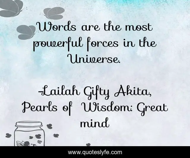 "Lailah Gifty Akita, Pearls of Wisdom: Great mind Quotes." Quoteslyfe.com, 2025. Sun. 07 Dec. 2025. <https://www.quoteslyfe.com/quote/Words-are-the-most-powerful-forces-in-112931>.