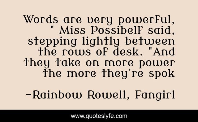 This page presents the quote "Words are very powerful, " Miss Possibelf said, stepping lightly between the rows of desk. "And they take on more power the more they're spok". Author of this quote is Rainbow Rowell, Fangirl. .
