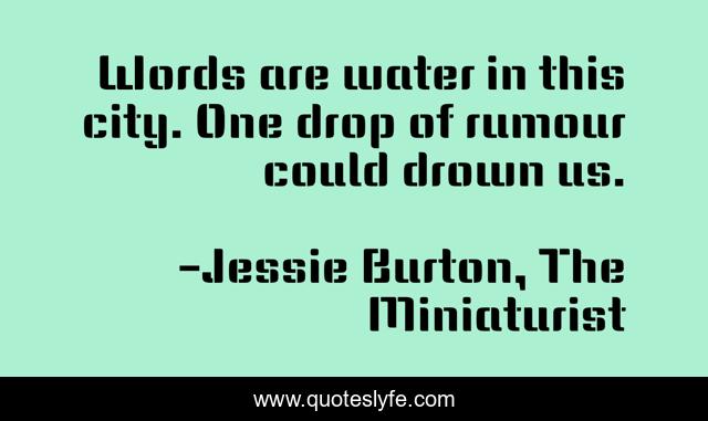 "Jessie Burton, The Miniaturist Quotes." Quoteslyfe.com, 2025. Mon. 08 Dec. 2025. <https://www.quoteslyfe.com/quote/Words-are-water-in-this-city-One-70711>.