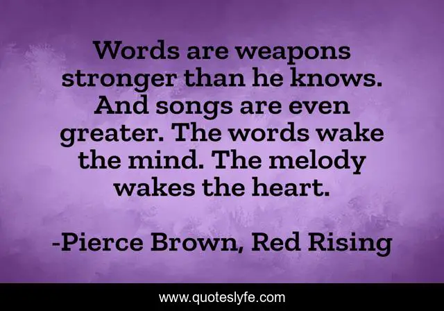 "Pierce Brown, Red Rising Quotes." Quoteslyfe.com, 2025. Sat. 06 Dec. 2025. <https://www.quoteslyfe.com/quote/Words-are-weapons-stronger-than-he-knows-79484>.