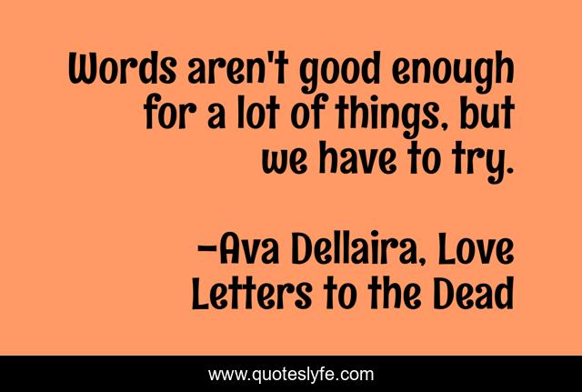 "Ava Dellaira, Love Letters to the Dead Quotes." Quoteslyfe.com, 2025. Mon. 08 Dec. 2025. <https://www.quoteslyfe.com/quote/Words-aren-t-good-enough-for-a-228619>.