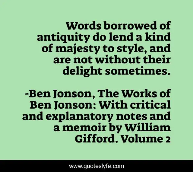 "Ben Jonson, The Works of Ben Jonson: With critical and explanatory notes and a memoir by William Gifford. Volume 2 Quotes." Quoteslyfe.com, 2025. Fri. 05 Dec. 2025. <https://www.quoteslyfe.com/quote/Words-borrowed-of-antiquity-do-lend-a-113416>.
