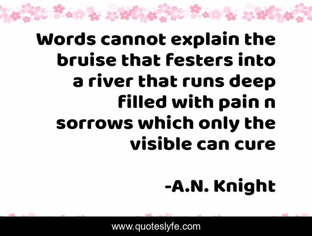This page presents the quote "Words cannot explain the bruise that festers into a river that runs deep filled with pain n sorrows which only the visible can cure". Author of this quote is A.N. Knight. .