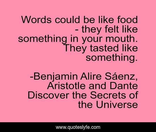 "Benjamin Alire Sáenz, Aristotle and Dante Discover the Secrets of the Universe Quotes." Quoteslyfe.com, 2025. Mon. 08 Dec. 2025. <https://www.quoteslyfe.com/quote/Words-could-be-like-food-they-felt-112499>.