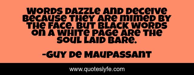 This page presents the quote "Words dazzle and deceive because they are mimed by the face. But black words on a white page are the soul laid bare.". Author of this quote is Guy de Maupassant. .