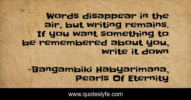 "Bangambiki Habyarimana, Pearls Of Eternity Quotes." Quoteslyfe.com, 2025. Fri. 05 Dec. 2025. <https://www.quoteslyfe.com/quote/Words-disappear-in-the-air-but-writing-108073>.