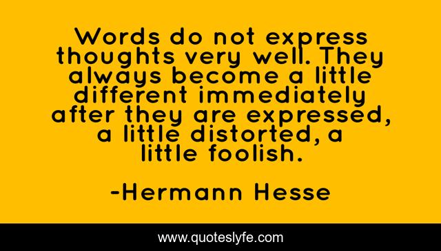 This page presents the quote "Words do not express thoughts very well. They always become a little different immediately after they are expressed, a little distorted, a little foolish.". Author of this quote is Hermann Hesse. .