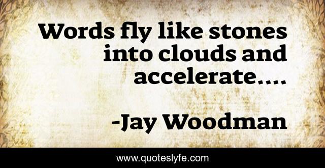 This page presents the quote "Words fly like stones into clouds and accelerate....". Author of this quote is Jay Woodman. .