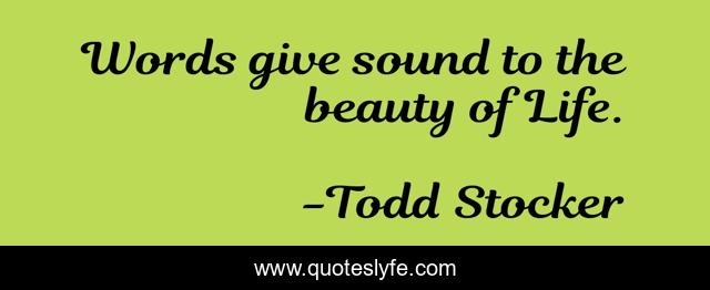 This page presents the quote "Words give sound to the beauty of Life.". Author of this quote is Todd Stocker. This quote is about life, words, positive, motivational, confidence, optimistic, inspirational, enthusiasm,.