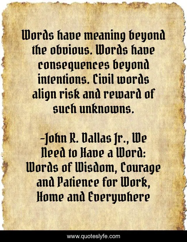 "John R. Dallas Jr., We Need to Have a Word: Words of Wisdom, Courage and Patience for Work, Home and Everywhere Quotes." Quoteslyfe.com, 2025. Sat. 06 Dec. 2025. <https://www.quoteslyfe.com/quote/Words-have-meaning-beyond-the-obvious-Words-113303>.