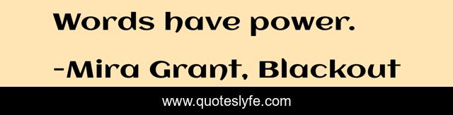 "Mira Grant, Blackout Quotes." Quoteslyfe.com, 2025. Mon. 08 Dec. 2025. <https://www.quoteslyfe.com/quote/Words-have-power-88086>.