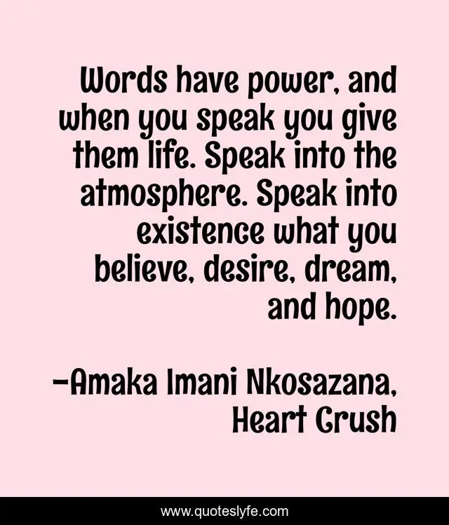"Amaka Imani Nkosazana, Heart Crush Quotes." Quoteslyfe.com, 2025. Fri. 05 Dec. 2025. <https://www.quoteslyfe.com/quote/Words-have-power-and-when-you-speak-73674>.