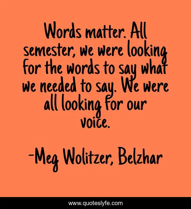 This page presents the quote "Words matter. All semester, we were looking for the words to say what we needed to say. We were all looking for our voice.". Author of this quote is Meg Wolitzer, Belzhar. This quote is about matter, voice, words,.