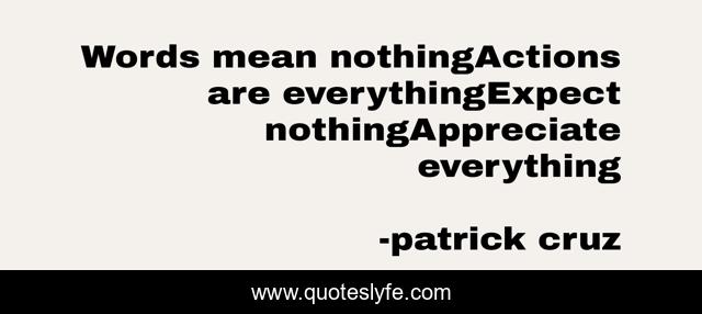 "patrick cruz Quotes." Quoteslyfe.com, 2025. Fri. 05 Dec. 2025. <https://www.quoteslyfe.com/quote/Words-mean-nothingActions-are-everythingExpect-nothingAppreciate-everything-204611>.