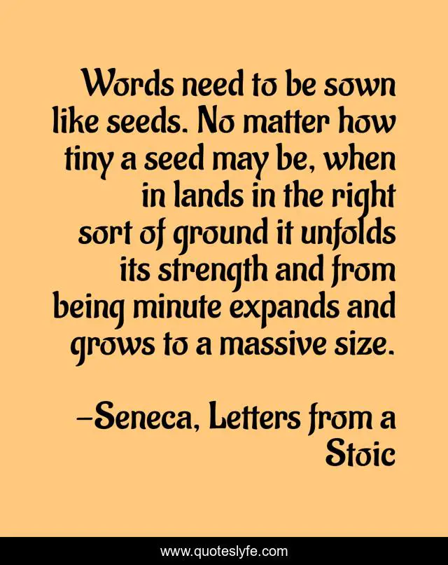 "Seneca, Letters from a Stoic Quotes." Quoteslyfe.com, 2025. Fri. 05 Dec. 2025. <https://www.quoteslyfe.com/quote/Words-need-to-be-sown-like-seeds-113373>.