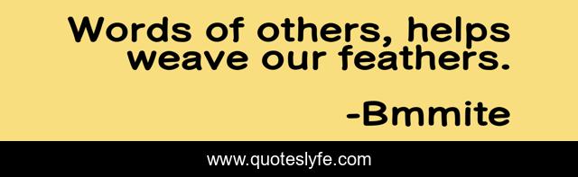 "Bmmite Quotes." Quoteslyfe.com, 2025. Fri. 05 Dec. 2025. <https://www.quoteslyfe.com/quote/Words-of-others-helps-weave-our-feathers-188242>.