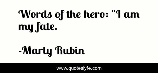 This page presents the quote "Words of the hero: "I am my fate.". Author of this quote is Marty Rubin. This quote is about heroism, self-sufficiency, fate,.