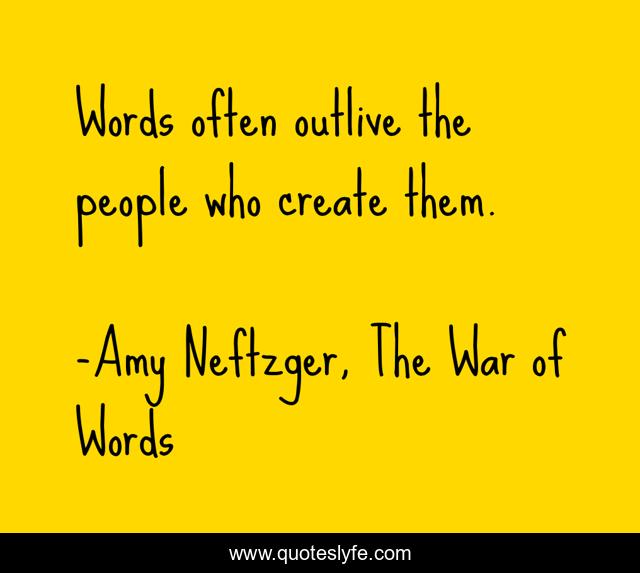 "Amy Neftzger, The War of Words Quotes." Quoteslyfe.com, 2025. Mon. 08 Dec. 2025. <https://www.quoteslyfe.com/quote/Words-often-outlive-the-people-who-create-112890>.