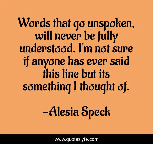 This page presents the quote "Words that go unspoken, will never be fully understood. I'm not sure if anyone has ever said this line but its something I thought of.". Author of this quote is Alesia Speck. .