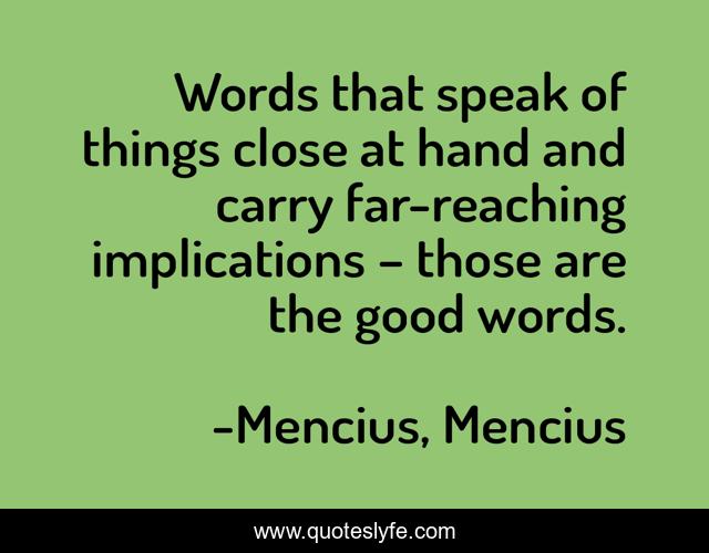 This page presents the quote "Words that speak of things close at hand and carry far-reaching implications – those are the good words.". Author of this quote is Mencius, Mencius. .
