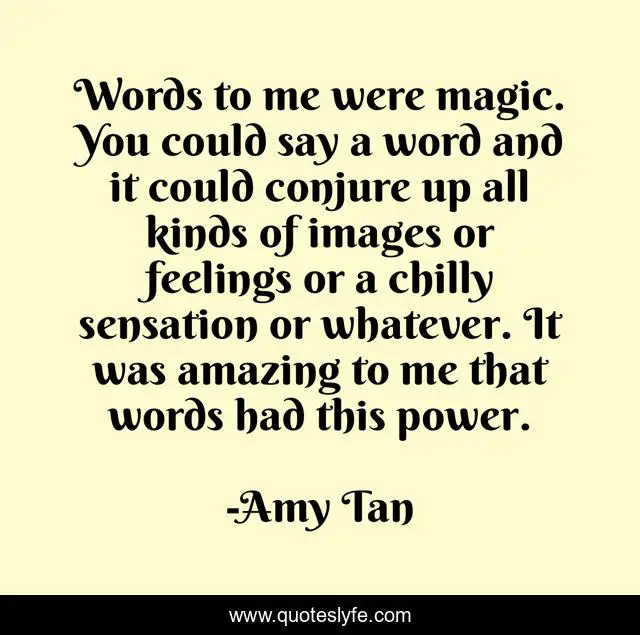 "Amy Tan Quotes." Quoteslyfe.com, 2025. Tue. 09 Dec. 2025. <https://www.quoteslyfe.com/quote/Words-to-me-were-magic-You-could-304420>.