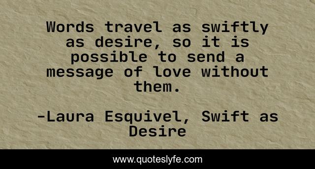 "Laura Esquivel, Swift as Desire Quotes." Quoteslyfe.com, 2025. Mon. 15 Dec. 2025. <https://www.quoteslyfe.com/quote/Words-travel-as-swiftly-as-desire-so-185249>.