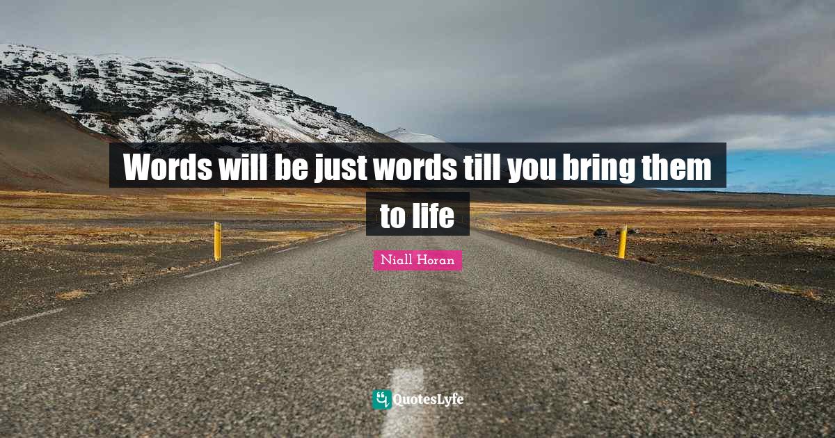 This page presents the quote "Words will be just words till you bring them to life". Author of this quote is Niall Horan. This quote is about life,.