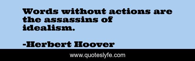 This page presents the quote "Words without actions are the assassins of idealism.". Author of this quote is Herbert Hoover. This quote is about going, getting,.