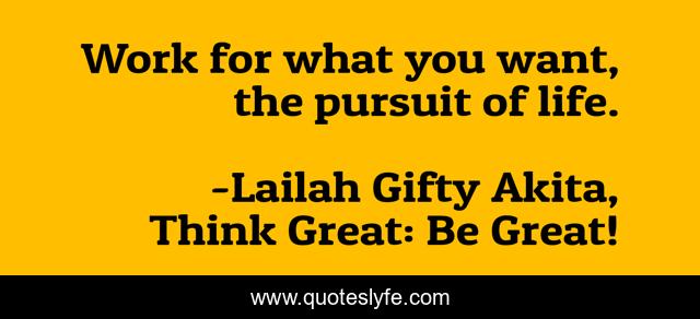 "Lailah Gifty Akita, Think Great: Be Great! Quotes." Quoteslyfe.com, 2025. Sun. 07 Dec. 2025. <https://www.quoteslyfe.com/quote/Work-for-what-you-want-the-pursuit-109525>.