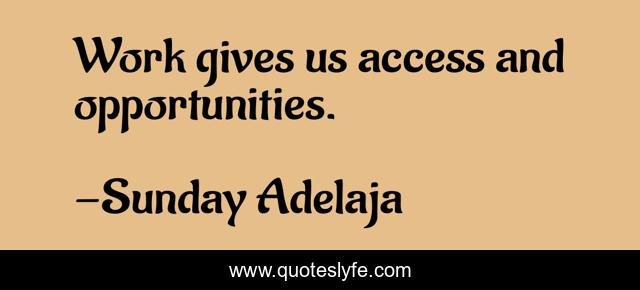 This page presents the quote "Work gives us access and opportunities.". Author of this quote is Sunday Adelaja. This quote is about access, work, opportunities,.