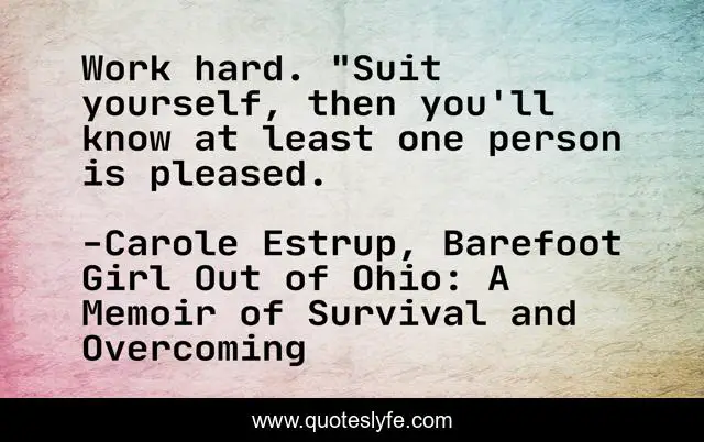 "Carole Estrup, Barefoot Girl Out of Ohio: A Memoir of Survival and Overcoming Quotes." Quoteslyfe.com, 2025. Sat. 06 Dec. 2025. <https://www.quoteslyfe.com/quote/Work-hard-Suit-yourself-then-you-ll-204496>.