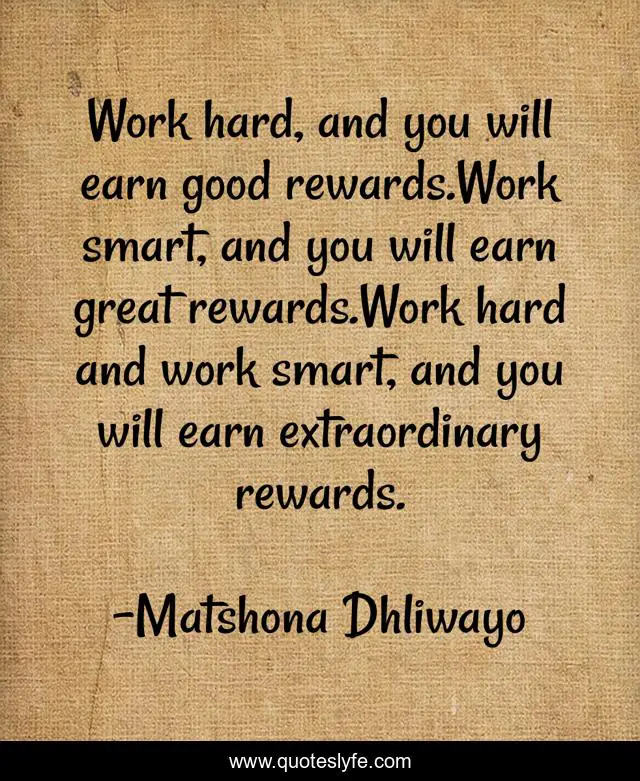 Work hard, and you will earn good rewards.Work smart, and you will earn great rewards.Work hard and work smart, and you will earn extraordinary rewards.