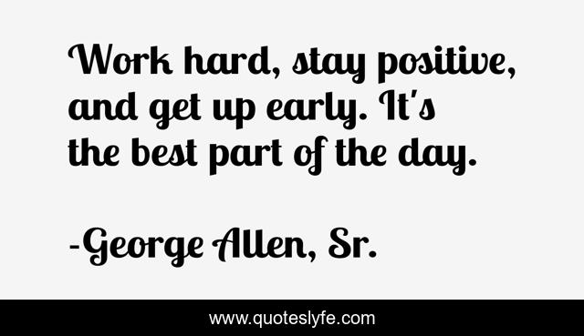 This page presents the quote "Work hard, stay positive, and get up early. It's the best part of the day.". Author of this quote is George Allen, Sr.. This quote is about positive, confidence, day, best,.