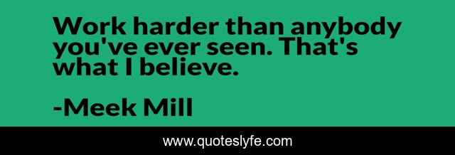 This page presents the quote "Work harder than anybody you've ever seen. That's what I believe.". Author of this quote is Meek Mill. This quote is about i believe, believe,.