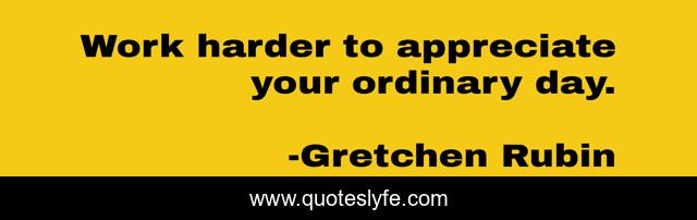 This page presents the quote "Work harder to appreciate your ordinary day.". Author of this quote is Gretchen Rubin. .