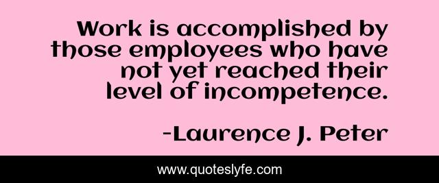 This page presents the quote "Work is accomplished by those employees who have not yet reached their level of incompetence.". Author of this quote is Laurence J. Peter. .