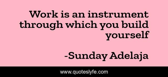 This page presents the quote "Work is an instrument through which you build yourself". Author of this quote is Sunday Adelaja. This quote is about kingdom, life, love, destiny, service, people, money, god, work,.