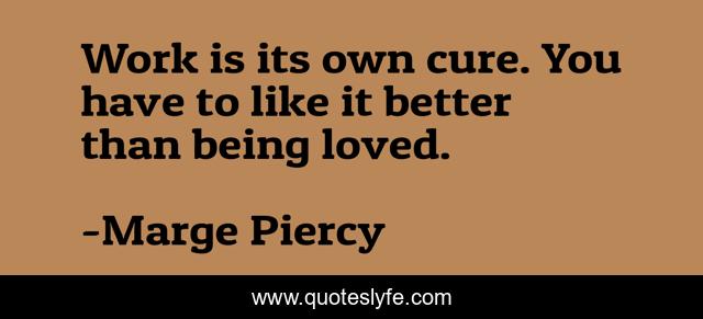 This page presents the quote "Work is its own cure. You have to like it better than being loved.". Author of this quote is Marge Piercy. .