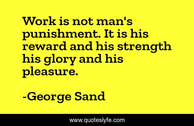 This page presents the quote "Work is not man's punishment. It is his reward and his strength his glory and his pleasure.". Author of this quote is George Sand. .