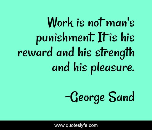 This page presents the quote "Work is not man's punishment. It is his reward and his strength and his pleasure.". Author of this quote is George Sand. This quote is about reward, strength, man,.
