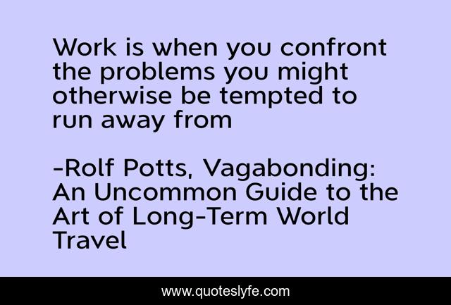 This page presents the quote "Work is when you confront the problems you might otherwise be tempted to run away from". Author of this quote is Rolf Potts, Vagabonding: An Uncommon Guide to the Art of Long-Term World Travel. This quote is about confronting-problems, running-away, work,.