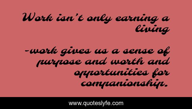 "work gives us a sense of purpose and worth and opportunities for companionship. Quotes." Quoteslyfe.com, 2025. Mon. 08 Dec. 2025. <https://www.quoteslyfe.com/quote/Work-isn-t-only-earning-a-living-152226>.
