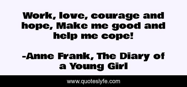 "Anne Frank, The Diary of a Young Girl Quotes." Quoteslyfe.com, 2025. Sat. 06 Dec. 2025. <https://www.quoteslyfe.com/quote/Work-love-courage-and-hope-Make-me-92029>.