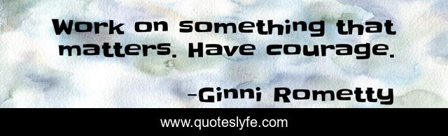 This page presents the quote "Work on something that matters. Have courage.". Author of this quote is Ginni Rometty. This quote is about matters, work, something,.