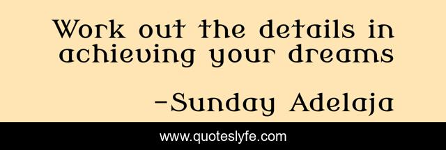 This page presents the quote "Work out the details in achieving your dreams". Author of this quote is Sunday Adelaja. This quote is about work, calling, purpose, achieving, dreams, details,.
