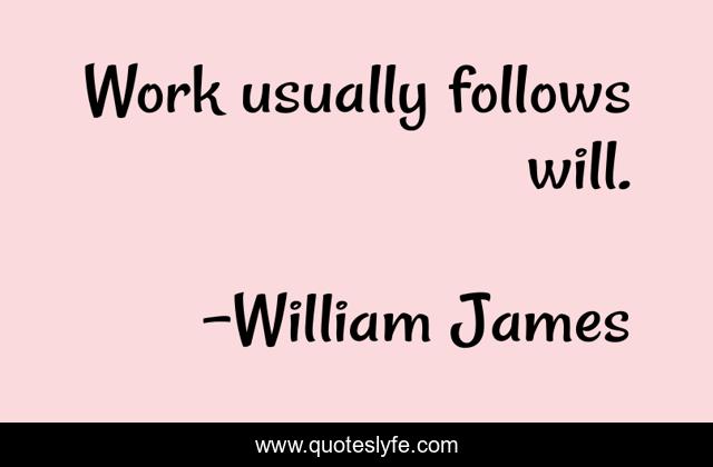 This page presents the quote "Work usually follows will.". Author of this quote is William James. This quote is about work, creativity,.