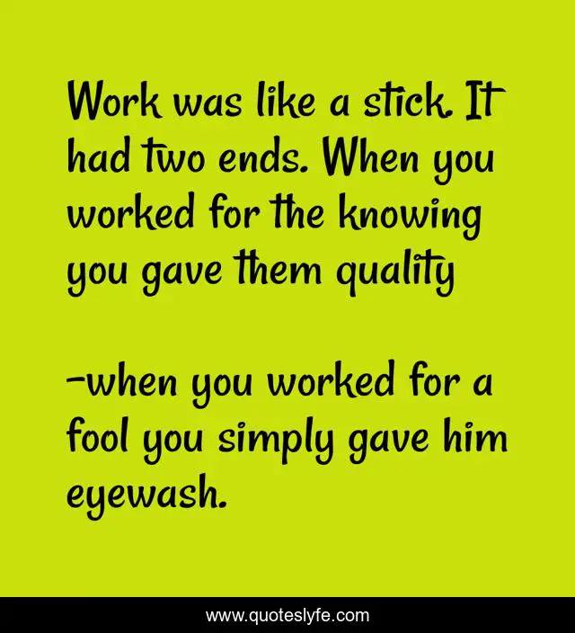 "when you worked for a fool you simply gave him eyewash. Quotes." Quoteslyfe.com, 2025. Fri. 05 Dec. 2025. <https://www.quoteslyfe.com/quote/Work-was-like-a-stick-It-had-71876>.